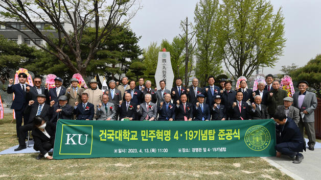 건국대학교는 서울캠퍼스 경영대학 앞에 4·19 민주혁명 기념탑을 세우고 준공식을 개최했다고 14일 밝혔다.