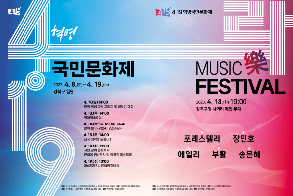 서울 강북구(구청장 이순희)가 구 대표 문화행사인 '제11회 4.19혁명국민문화제'를 이달 8~19일 구 일원에서 개최하고 있다.