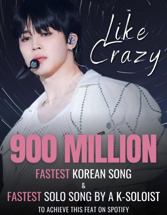방탄소년단(BTS) 지민 'Like Crazy', 스포티파이 9억 스트리밍 돌파