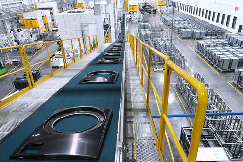 전체 공정은 부품 가공, 서브 어셈블리, 제품 조립, 포장 순으로 이뤄지는데, 자동화율이 63%에 달할 정도로 로봇·카메라 센서가 생산에 주도적인 역할을 한다.