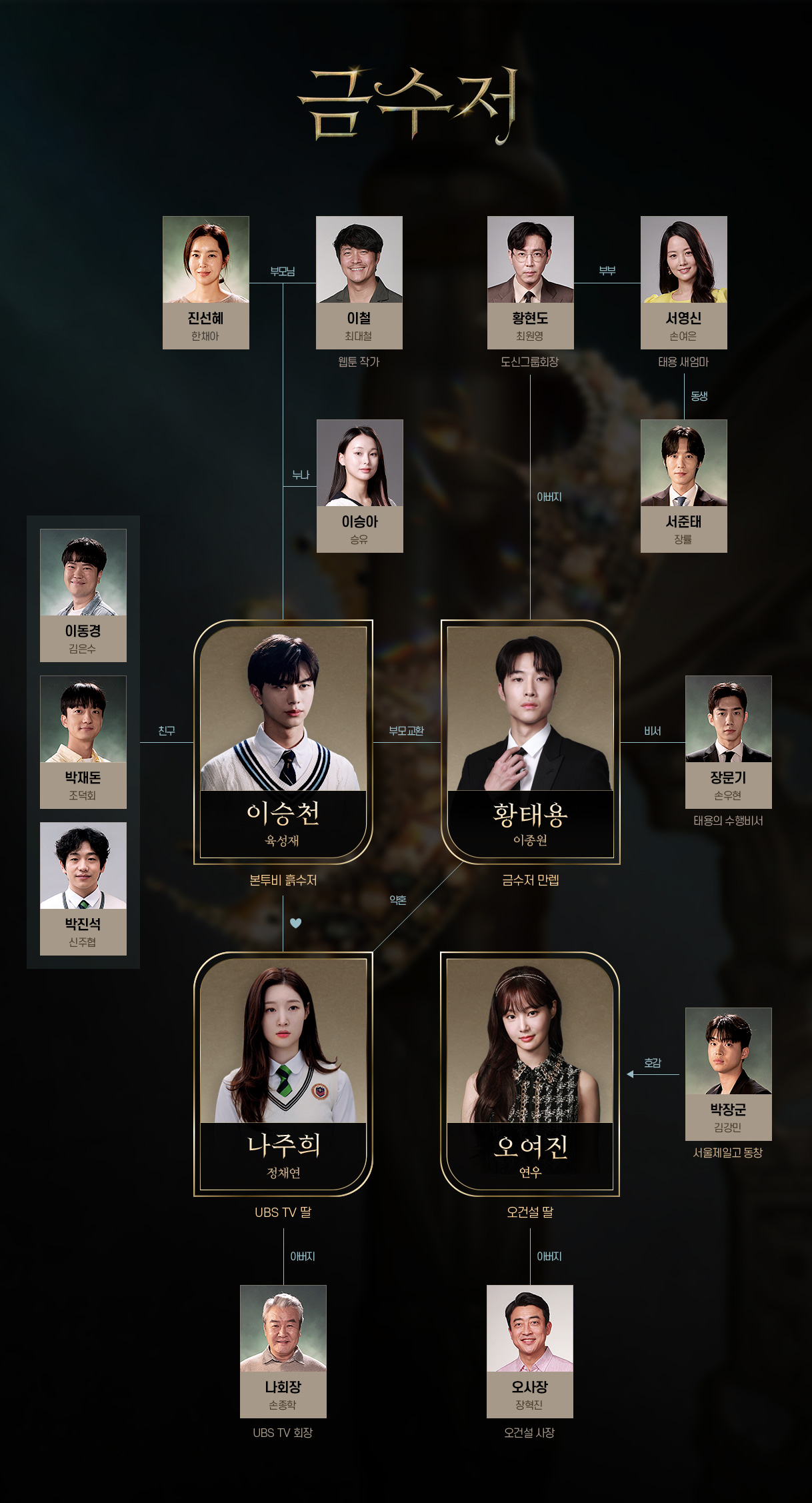 '금수저'는 가난한 집 아이가 우연히 얻게 된 금수저를 통해 부잣집 친구와 운명을 바꿔 후천적 금수저가 된 드라마로, 동명의 인기 네이버웹툰이 원작이다.