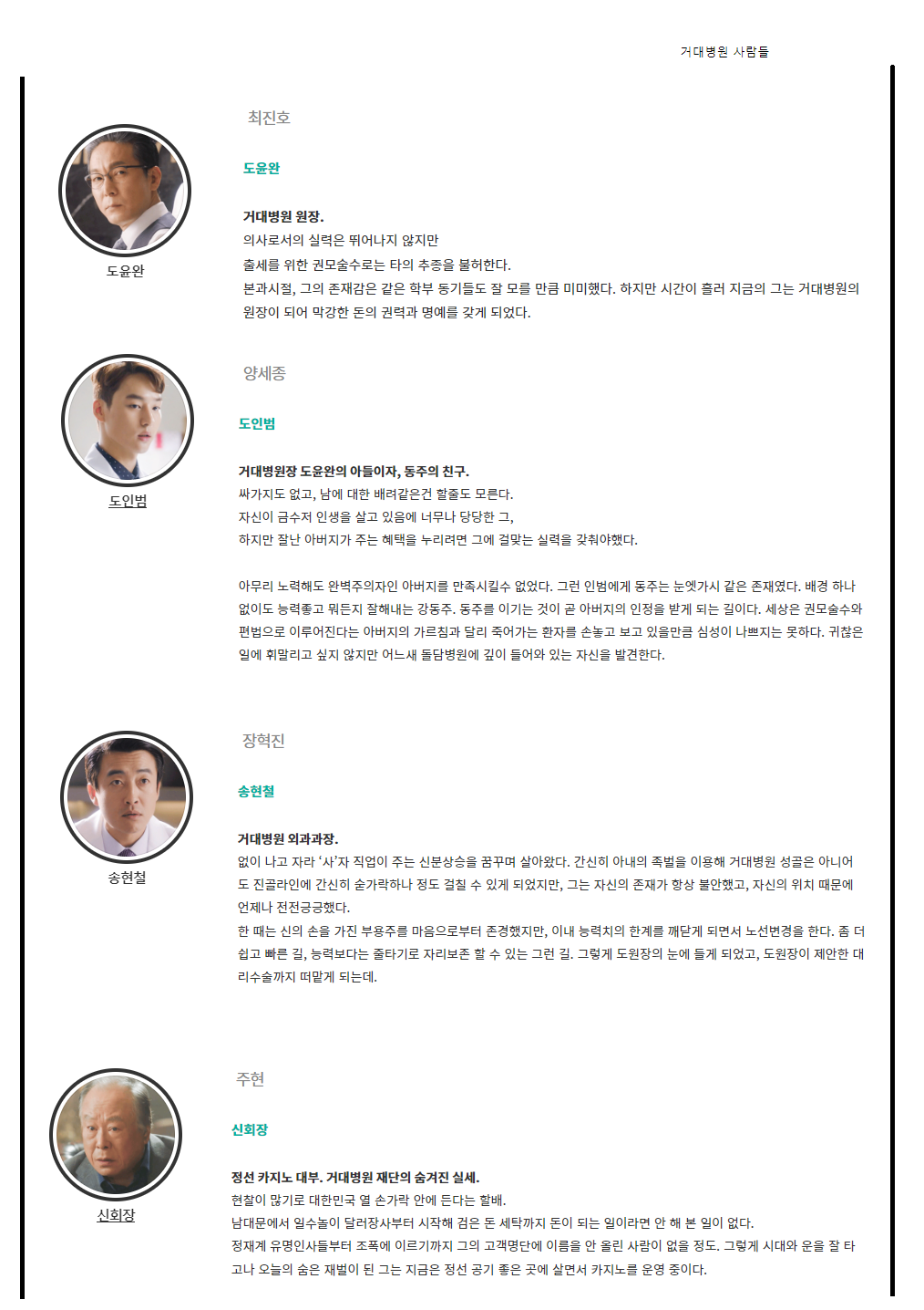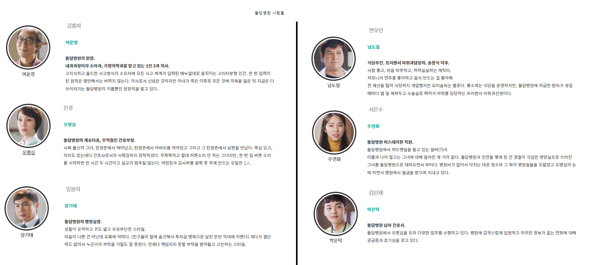 편의상 등장인물관계도랑 동일하게 배치했어요~